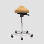 Recouvert de cuir véritable sur la selle, solide, fiable sur la durée, drastiquement différent des sièges classiques pour le bien-être et la santé des professionnels de tous les horizons.
