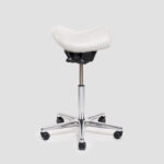 Recouvert de cuir véritable sur la selle, solide, fiable sur la durée, drastiquement différent des sièges classiques pour le bien-être et la santé des professionnels de tous les horizons.